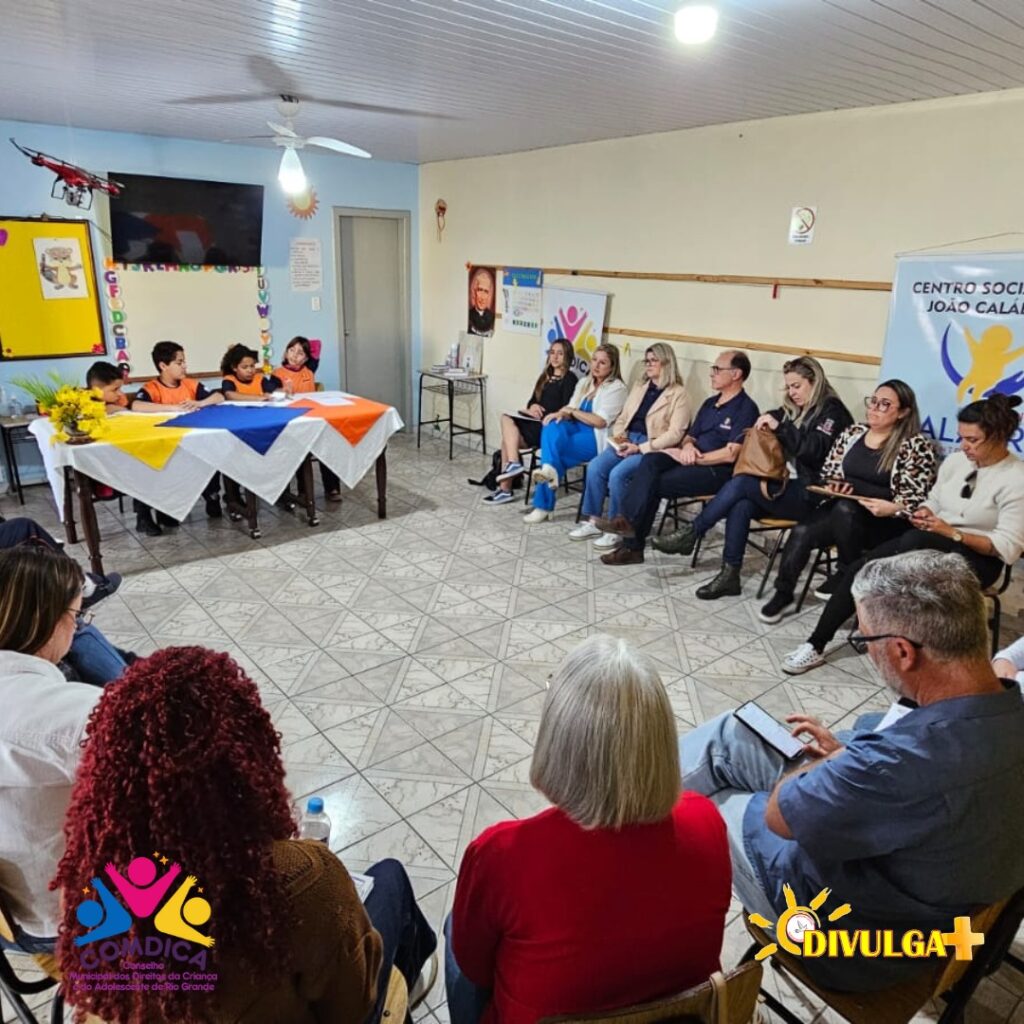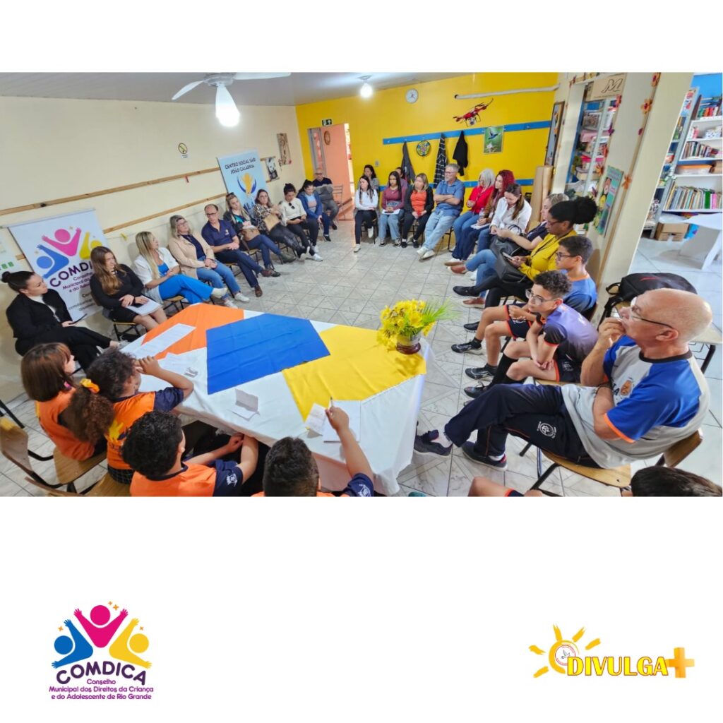 O Conselho Municipal dos Direitos da Criança e do Adolescente do Rio Grande (COMDICA) realizou nesta quarta-feira, 1º de outubro, sua reunião ordinária mensal, marcada por um momento especial em celebração ao Mês das Crianças. A sessão contou com a participação ativa e inspiradora de crianças atendidas pelo Centro Social São João Calábria, que assumiram simbolicamente as posições de presidência (Valentina da Costa Grigolo), vice-presidência (Ilma Yasmin Soares Biché) e secretarias (Lucas Pachetti Martins e Nicolas Severo Belo), conduzindo os trabalhos junto às entidades presentes.