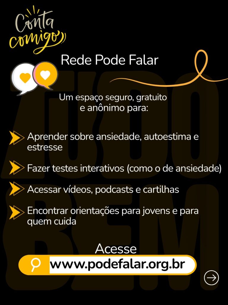 A adolescência e os primeiros anos da juventude são períodos decisivos para a saúde mental. Ferramentas como a Rede Pode Falar oferecem suporte, informação e um primeiro passo. Mas cuidar de si e dos outros exige atenção, escuta e, quando necessário, orientação profissional. Quanto mais cedo for o diagnóstico e o acolhimento, maiores são as chances de superação.